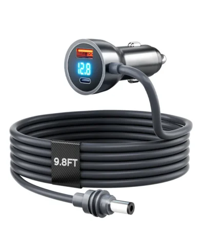 Car Cigarette Lighter DC Power Cable with Digital Voltage Display for Starlink Mini